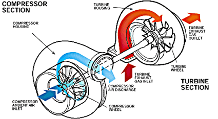 A turbocharger harnesses the kinetic and thermal energy of the exhaust gas of a engine, To add more charge or air to the engine.